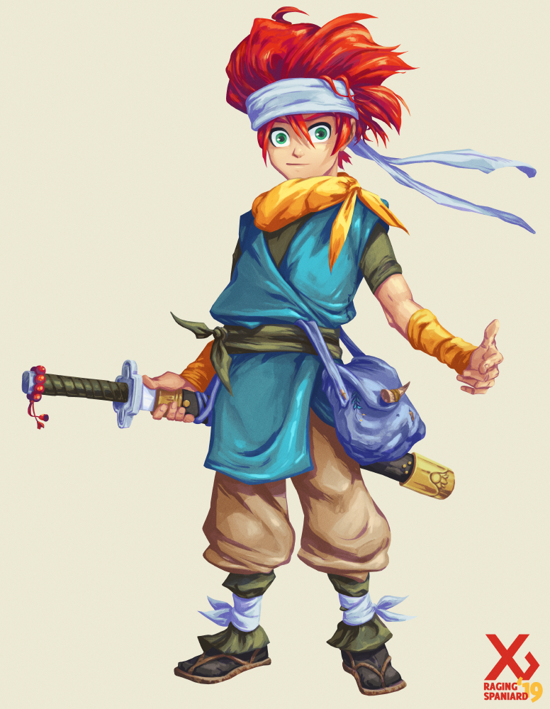 crono_v2_render Crono needs to read as a samurai fanboy. Make the clothes a little oversized, make him look a little bit messy. He needs to pull off a look that works when hes a noob and a badass when hes going through fools with the rainbow sword