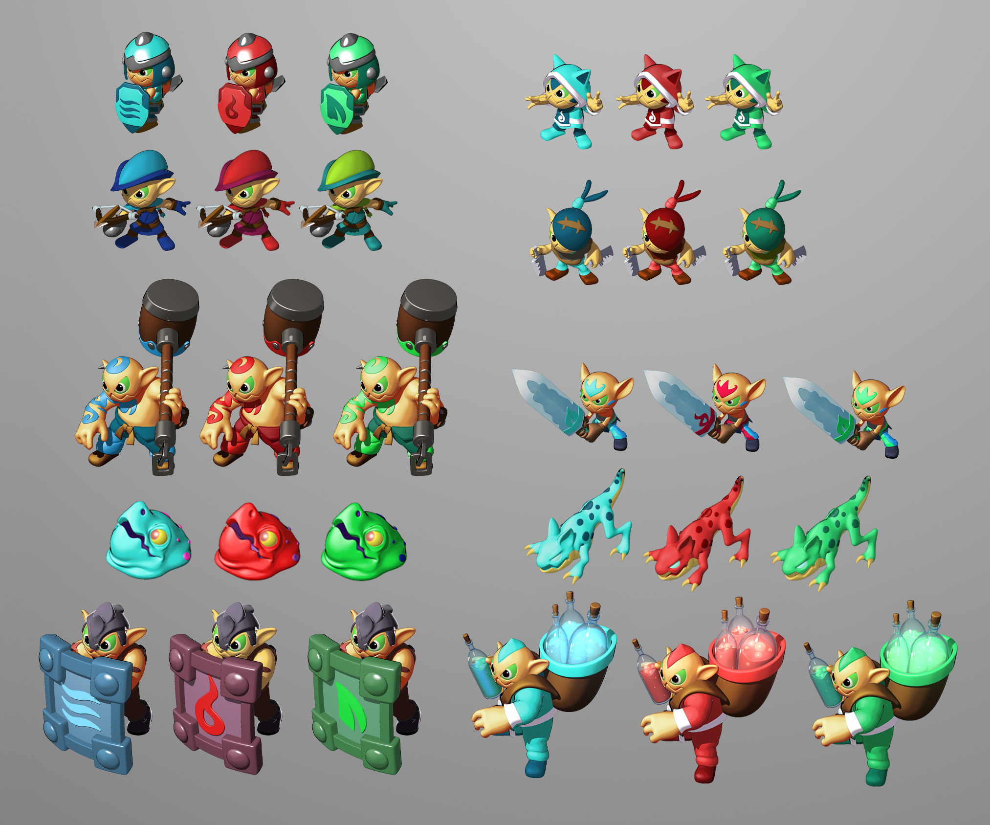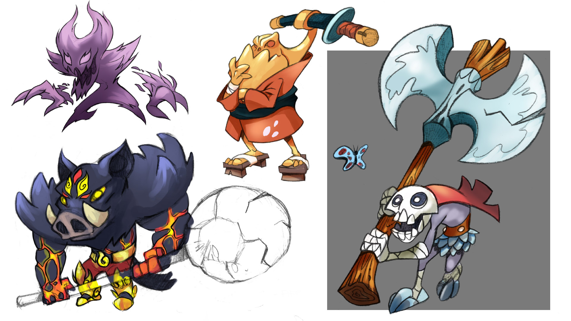 For the enemies in the game, I created a new race of creatures. Simple charming designs that described a tribe with their own history and customs