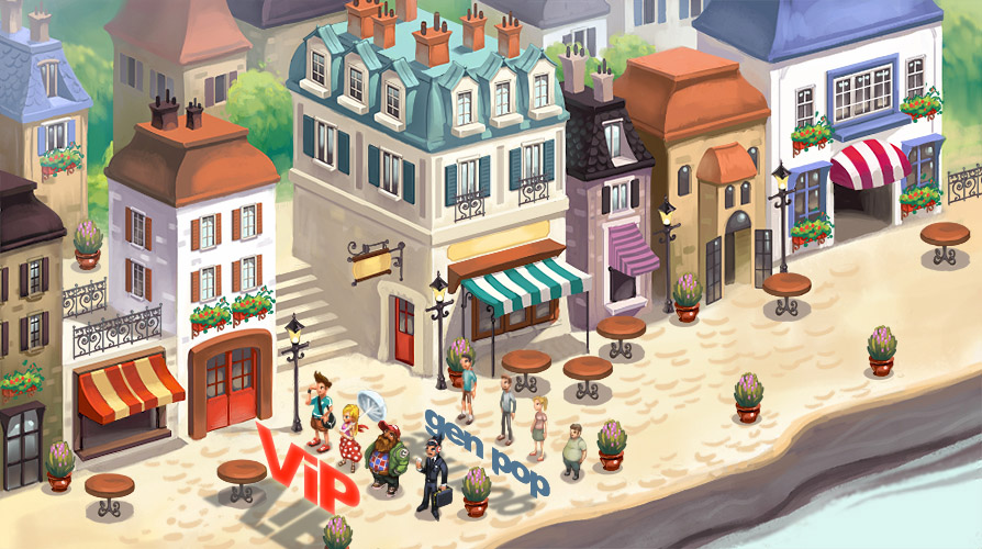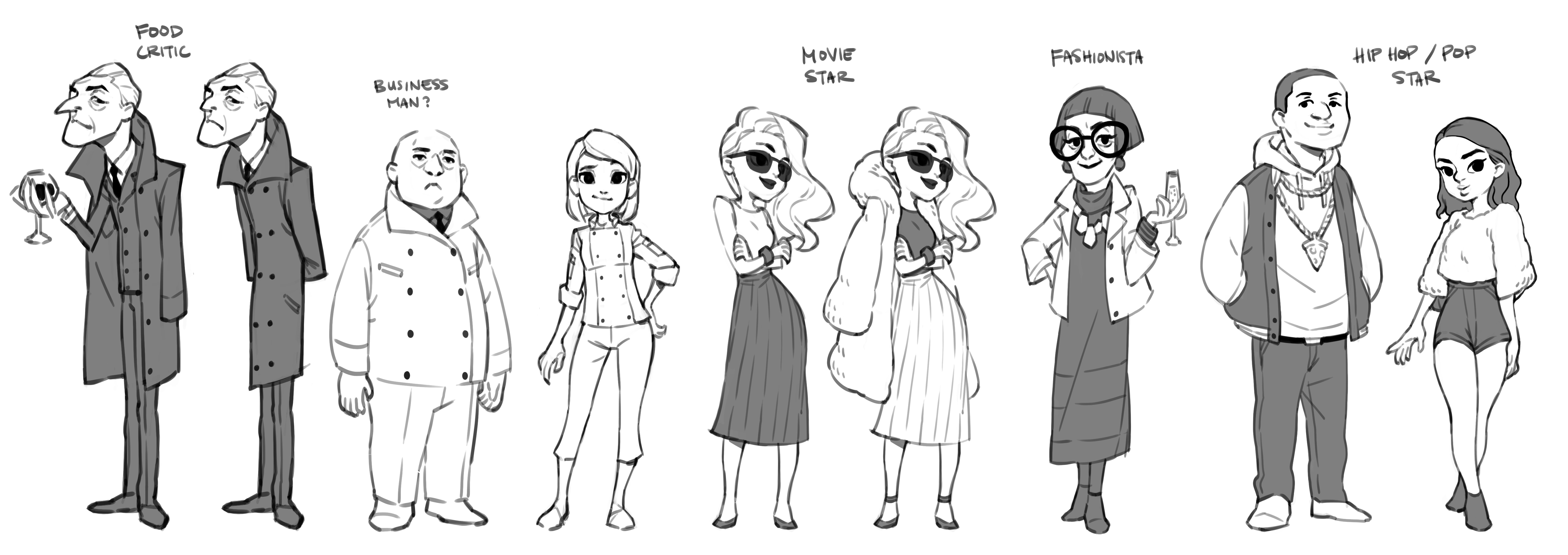 And of course, the customers! design called for a strong cast of VIP customers that would have a personalized story for each, so each time you would see them walking around town youd make sure to give them your full attention