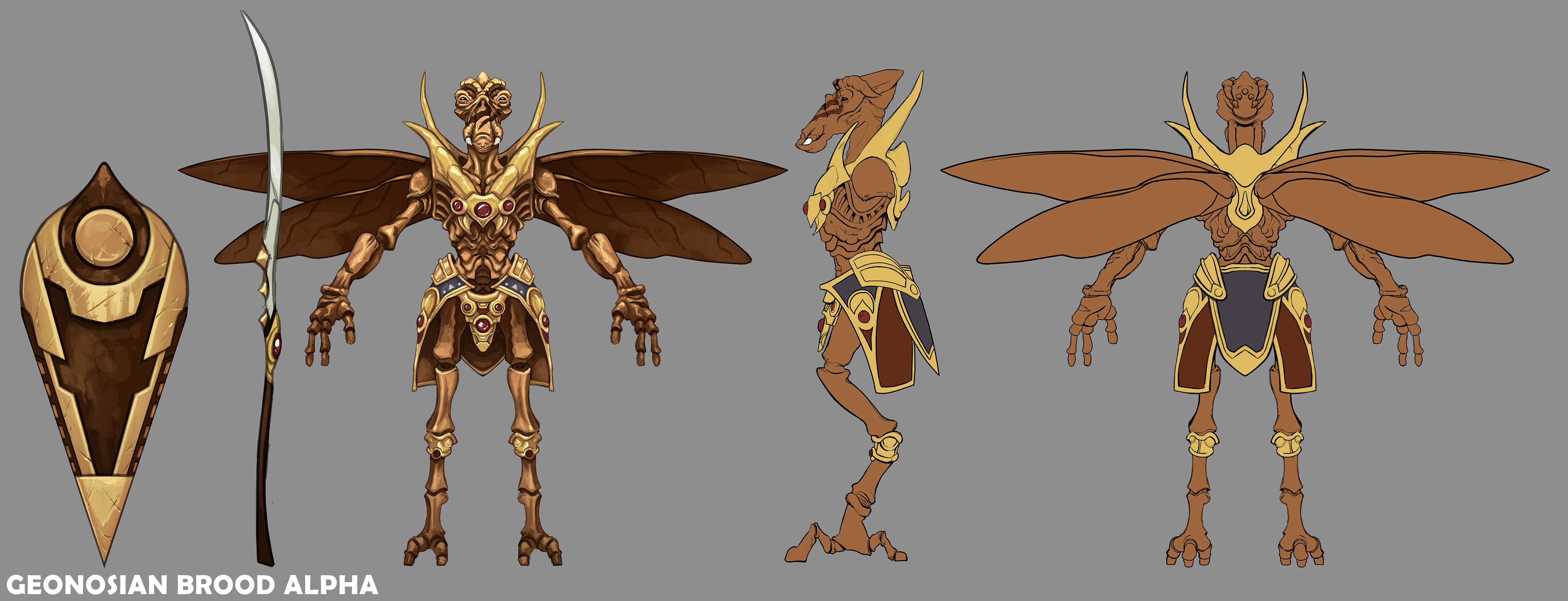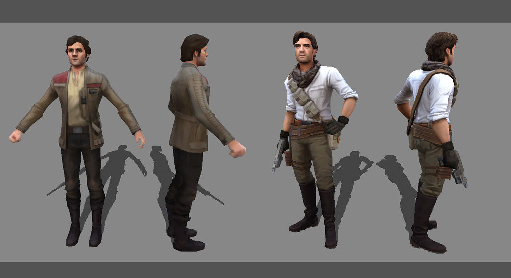 I developed and concepted a fair amount of characters in the game, including the brand new Geonosian Brood Alpha who is an all new addition to that faction. For the Knights of the Old Republic characters I had to concept them practically from scratch since the source assets did not provide enough fidelity or they no longer fit the current direction for the franchise, Canderous Ordo, for instance, was given added flair and details to his outfit in order to get him close to Mandalorian fashion.