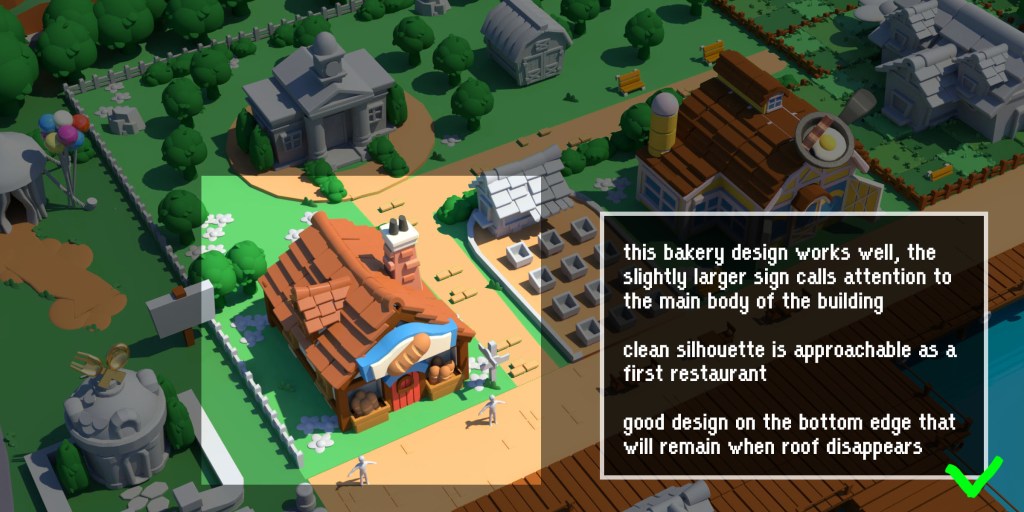To bring it all home, we added building animations that would play to let the player know the restaurant was ready to interact with, this way we had the player interact with the world and stay in it without the need of a UI layer. Disclaimer, the game would never be this bouncy, this was also a performance test, haha