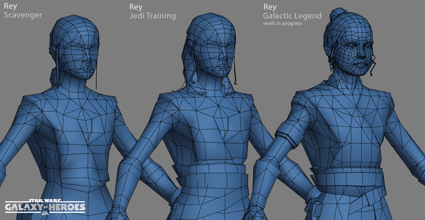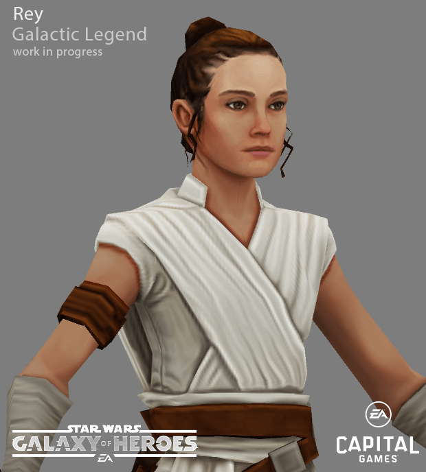 Galactic Legends represent the highest tier of unit in SWGoH. They are the only units with an Ultimate Attack (which has its own cinematic), unique UI to differentiate them visually from other characters and we also gave them a higher budget so their model, texture, animations and VFX could represent the character at their best. Rey and Kylo were the units that launched the feature and I was deeply involved from ideation to release, including the unit details, animation choreography and building the cinematics in Unity myself.