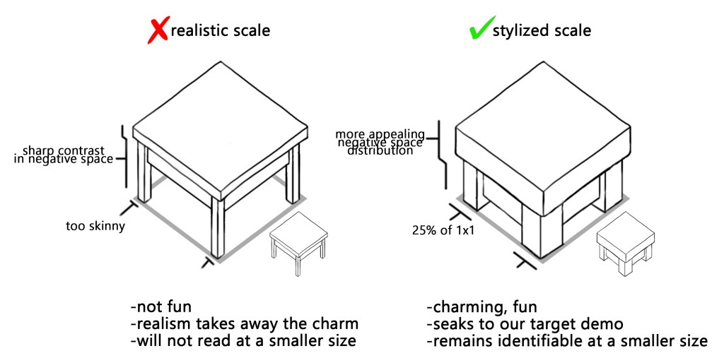 Eventually, we found our niche. A tighter camera angle that could fit our budget, a more intimate experience that would be clearly visible on a small screen. Fun, bold, colorful shapes. The following visual taarget gave the team a clear vision to pursue