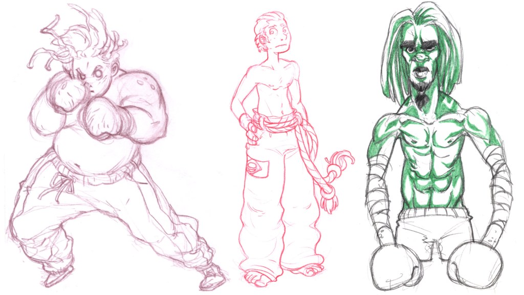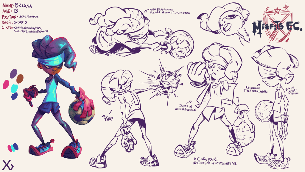 The cast is slowly coming together, the studies below start showing the level of refinement I want, as characters grow in complexity the importance of shape language increases. Each player should have a distinct style and sense of fashion that gives you insight not just on their personality but their style of play as well.